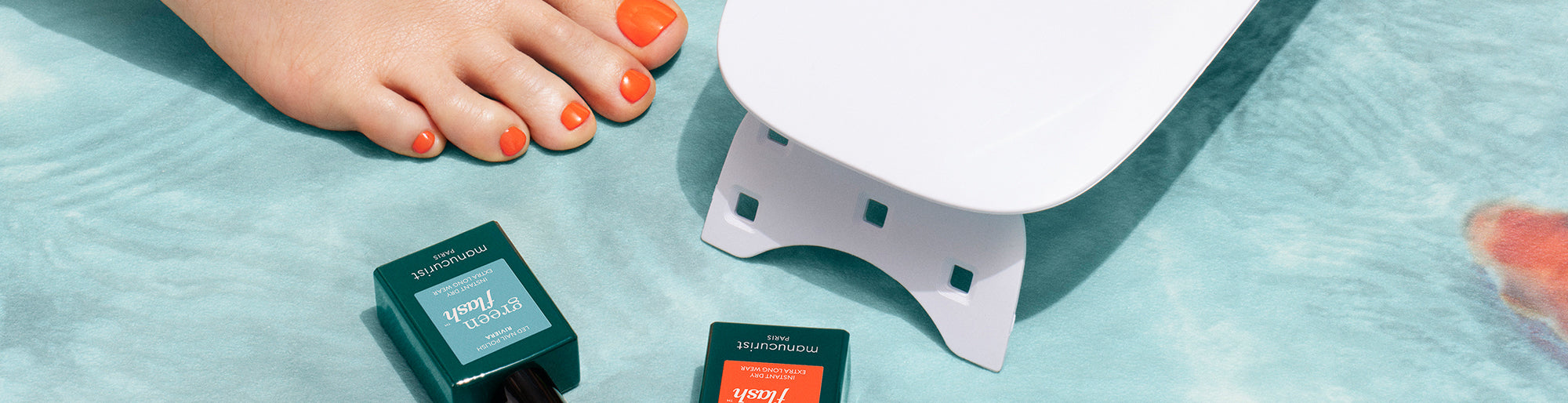 If you want to wear gel polish on your feet, we can only recommend Green Flash™ polish, the green and clean alternative to traditional gel polish. Its formula is up to 84% plant based and offers intense color and a mirror shine for up to 10 days, as well as a removal process that does not damage your nails. Gel polish is perfect for your feet all year round, from summer to winter. Wondering which shades to choose for the colder months? Discover the must-have gel polish colors for winter here.