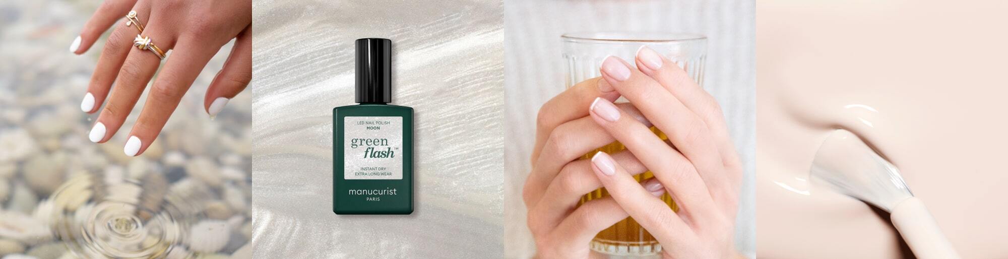 White nails reinvent themselves with every season, playing with textures, tones, and finishes to match every time of year. With our Green™ classic polish or Green Flash™ gel polish, give in to the allure of white!