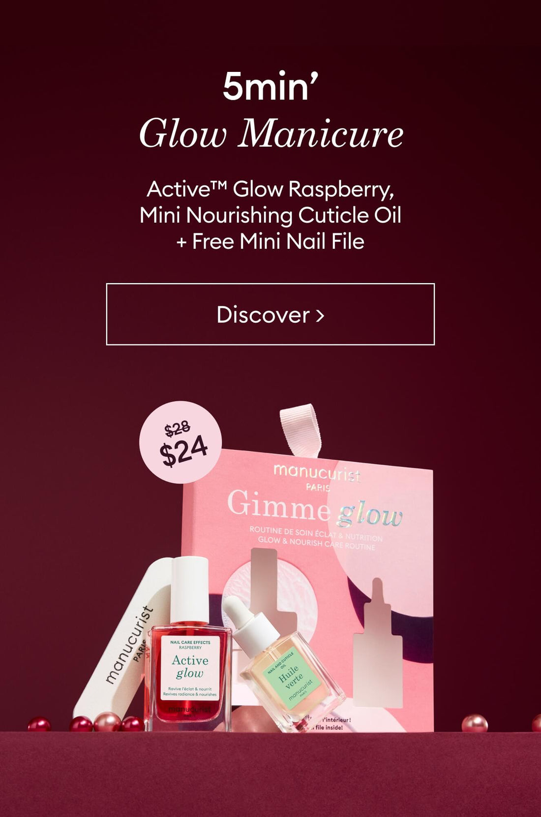 Active™ Glow Raspberry + Nourishing Cuticle Oil + FREE mini Nail FileLimited edition -