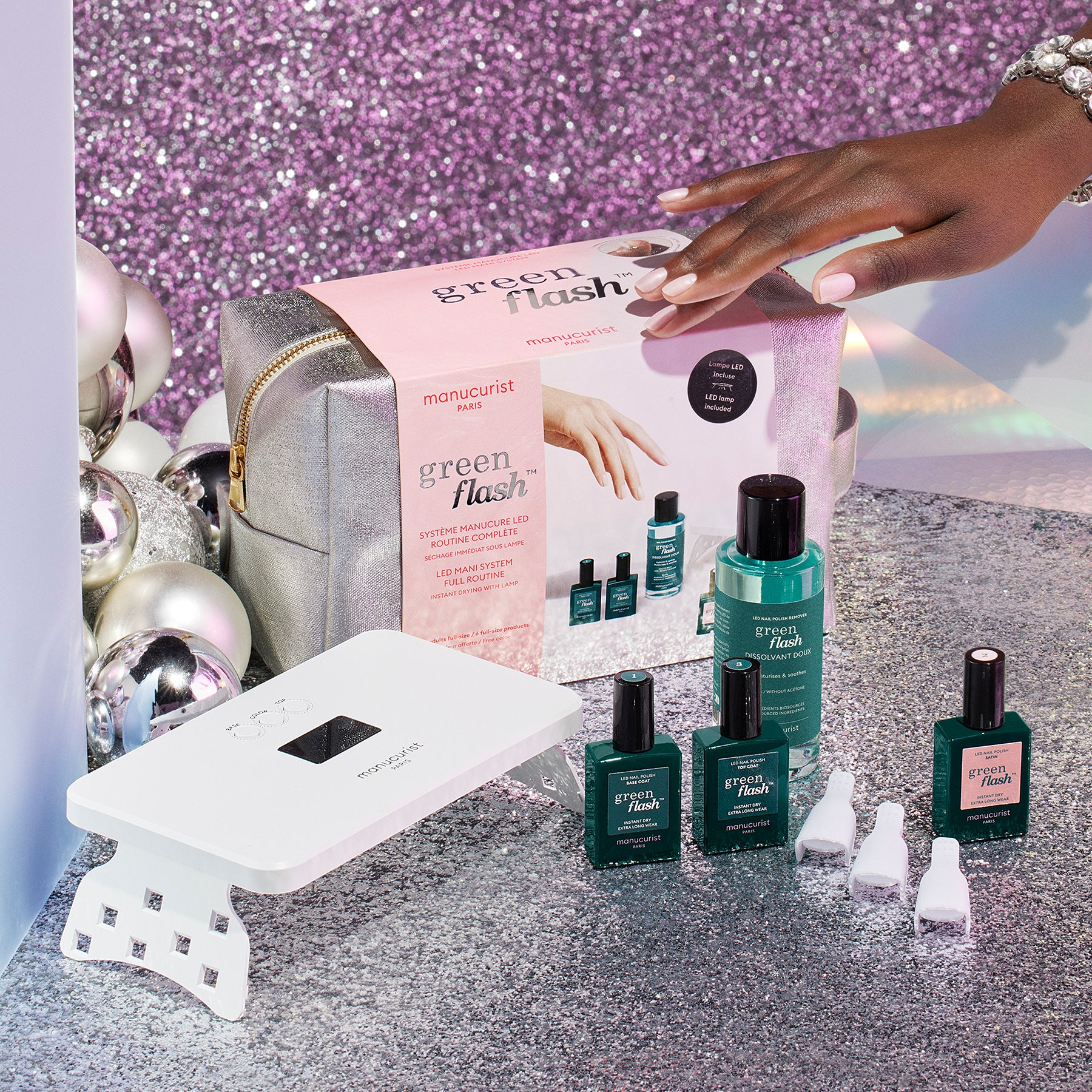 For the holidays, get the complete Green Flash™ LED gel polish routine in a limited edition silver pouch, featuring the foldable 36 Watt lamp. Take it everywhere for professional manicures in just 20 minutes, with perfect wear lasting up to 10 days.