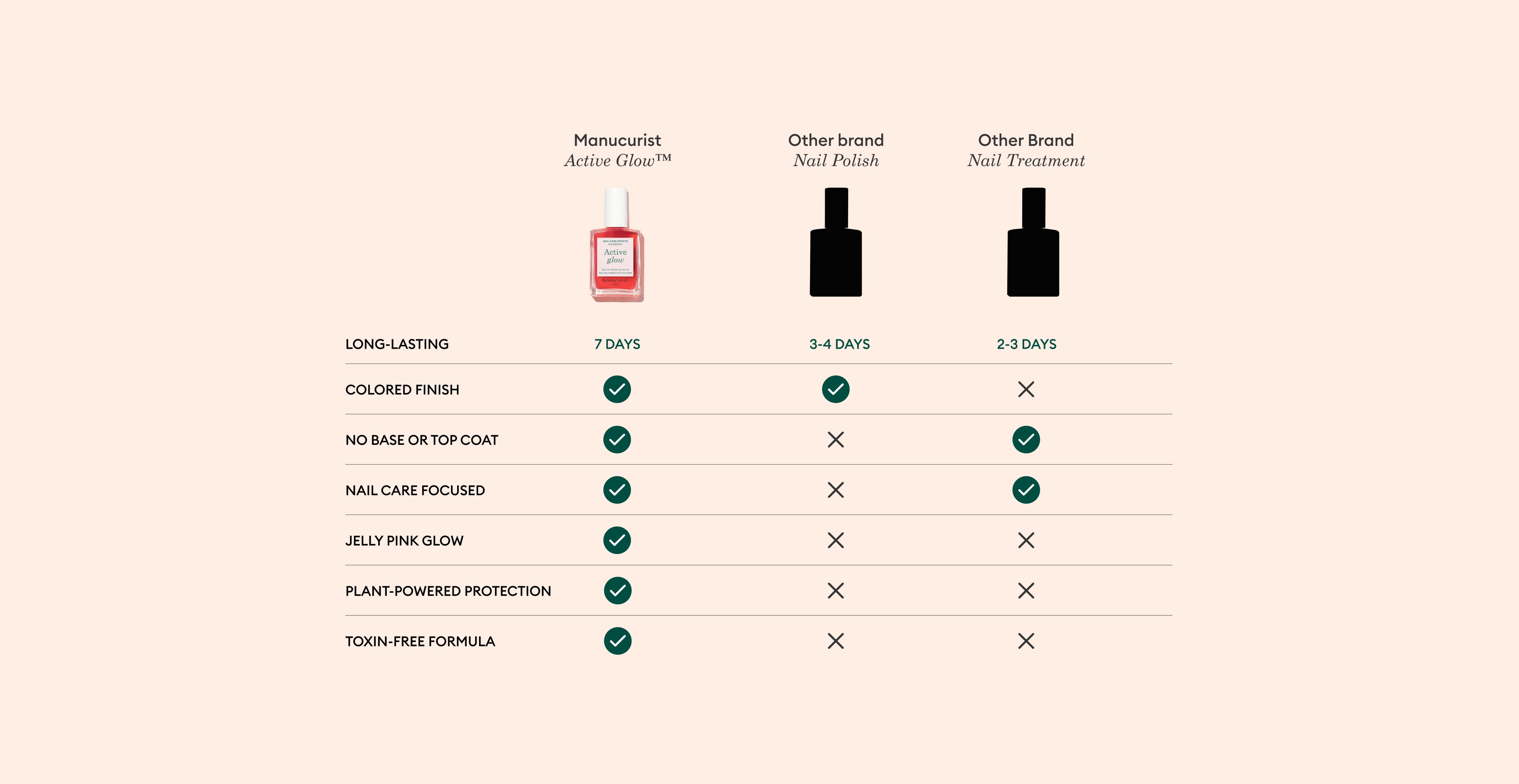 The Active Glow™ polish wears for an average of 3 to 4 days. If you want to prolong the wear-time, add a new layer after about 3 days.