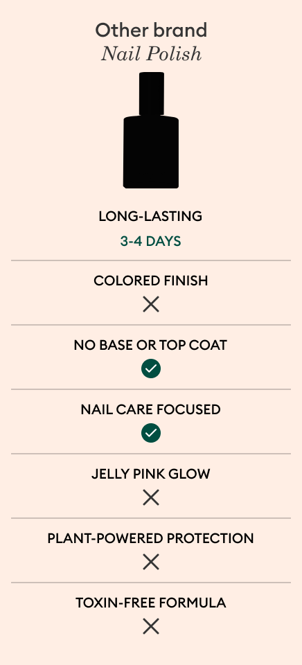 A hybrid nail treatment infused with a cocktail of plant powered actives that protect and strengthen nail fibers while offering a peachy glow effect.