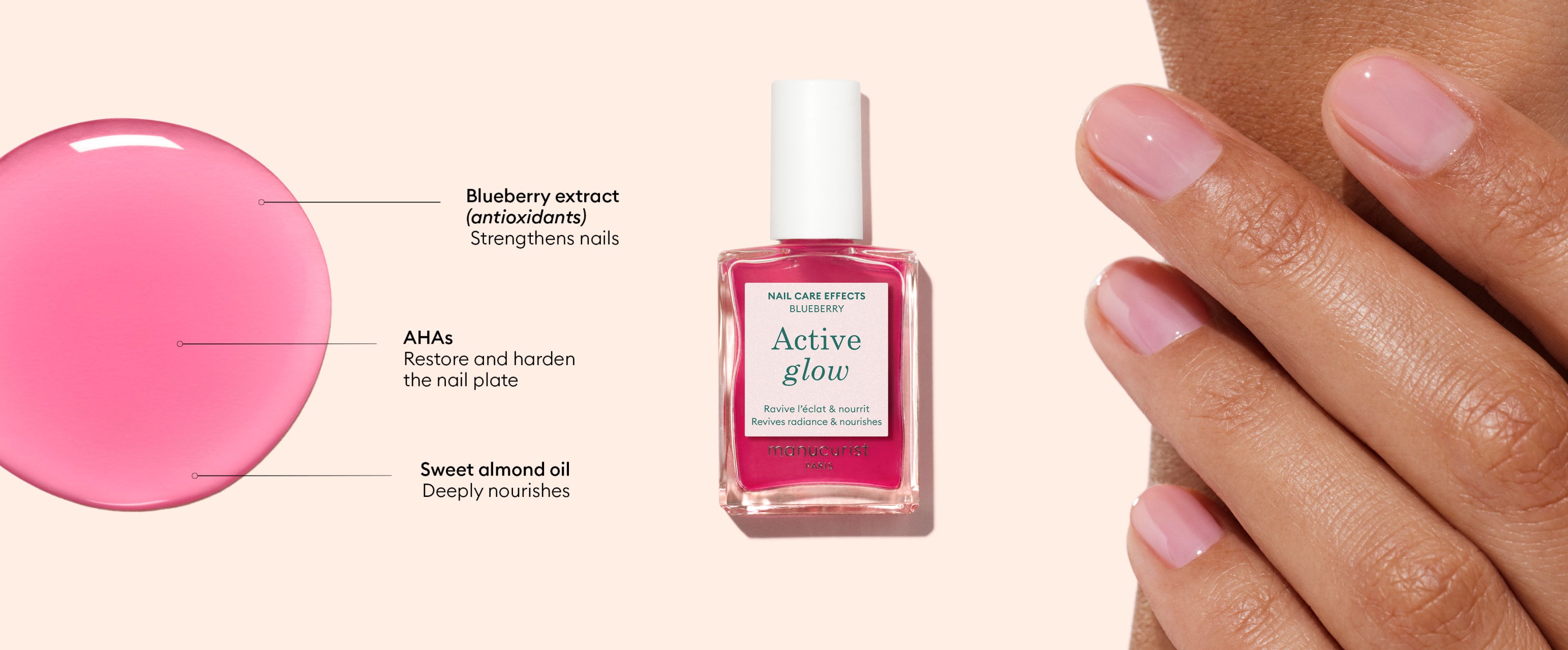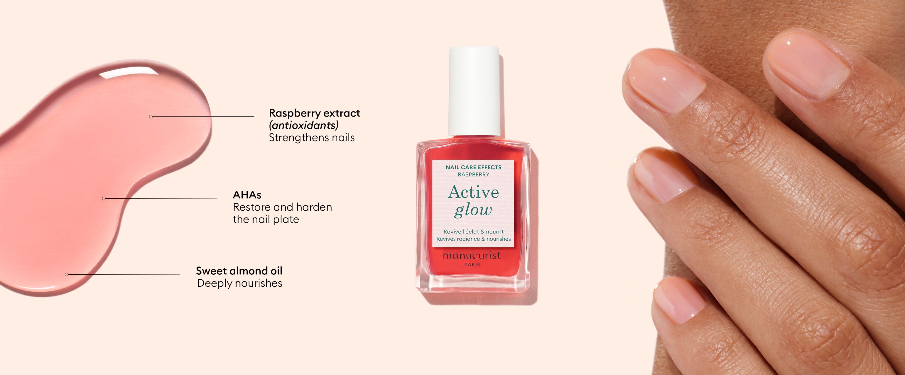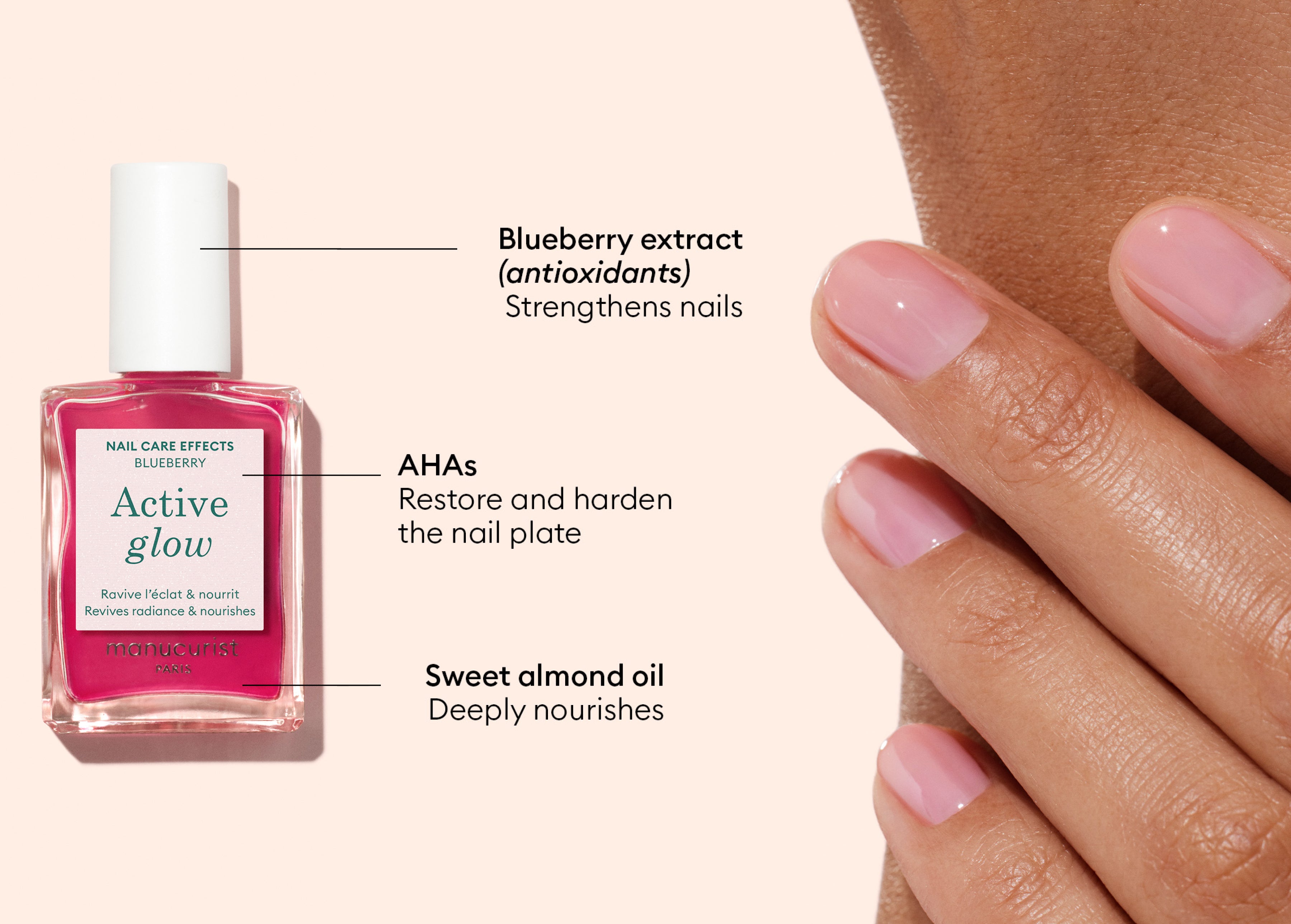 If you have very damaged nails, you can absolutely combine the SOS treatment base with our Active Glow™ hybrid polish/treatment for an immediate "healthy glow" effect. Otherwise, Active Glow™ already contains active nail care ingredients (raspberry extracts with soothing and regenerating properties, AHAs that are particularly effective in restoring and revitalizing even the most fragile nails, and sweet almond oil to intensely nourish nails and cuticles). It's a true 2-in-1 treatment and beautifier.