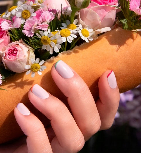 Give your French a fresh spin with rainbow tips in soft pastel hues. Paired with a sheer base, it’s a radiant, elegant look that’s perfect for spring.