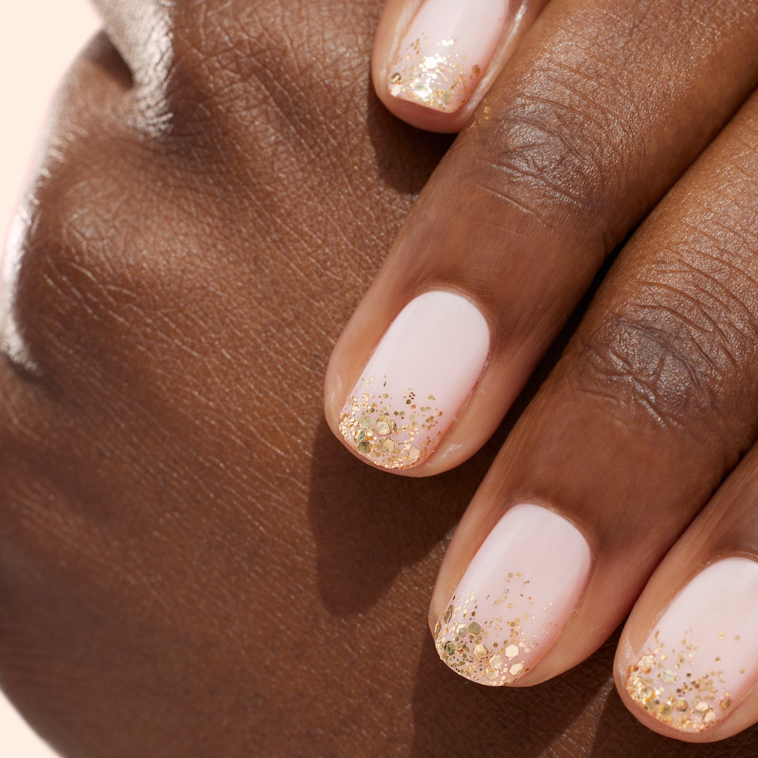 Before the polish is completely dry, tap on some glitter to create an ombre effect