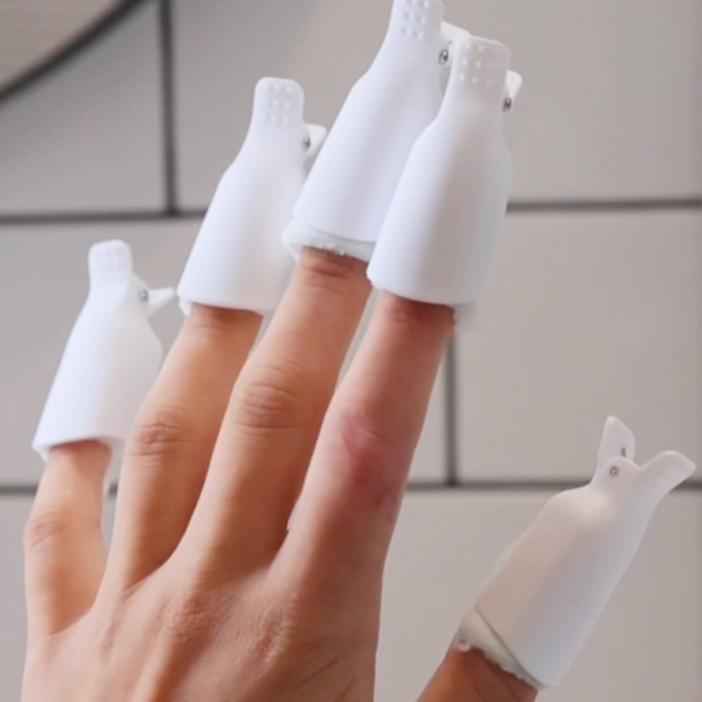 Place cotton on each nail and secure with the clips