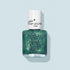 A forest green kids nail polish with gold and silver glitter that comes off with soapy water.